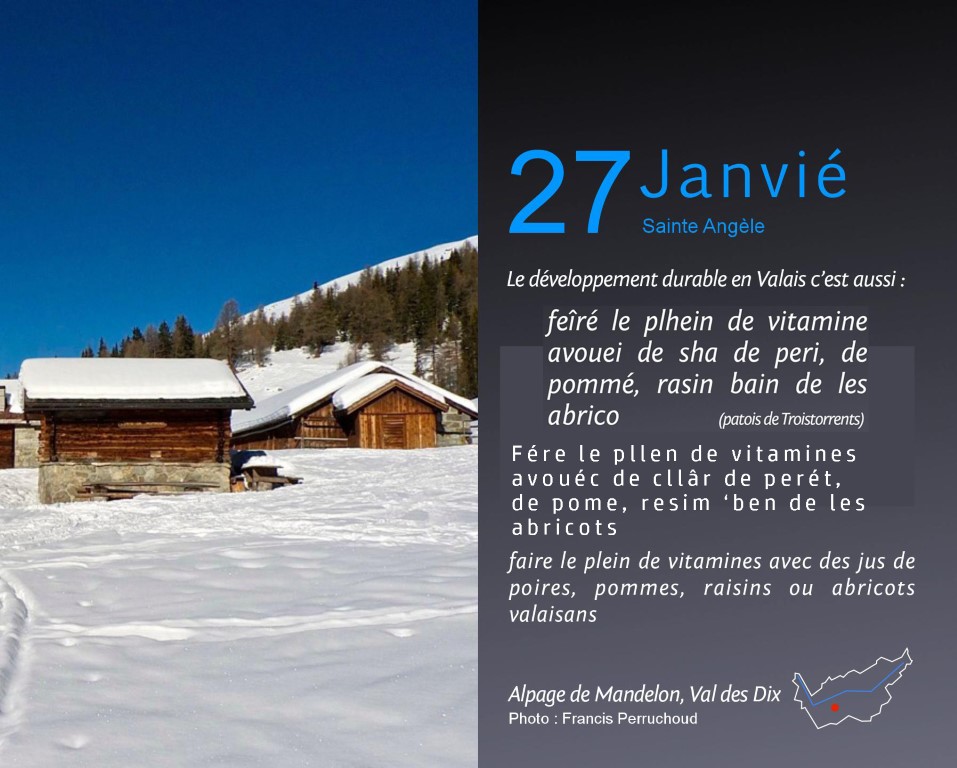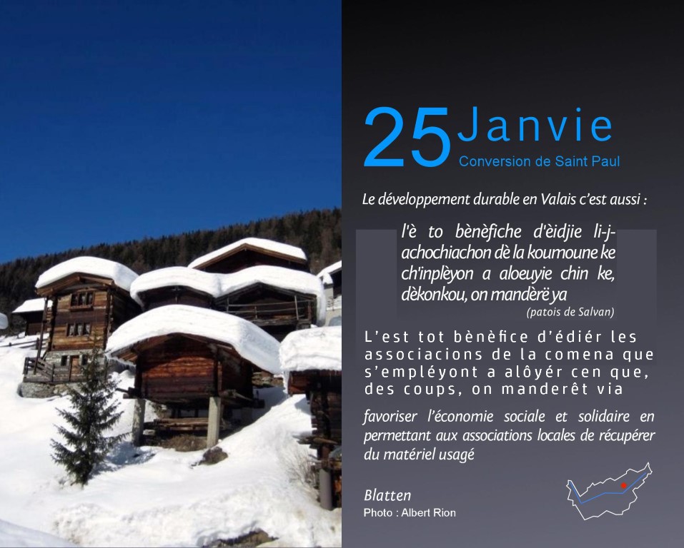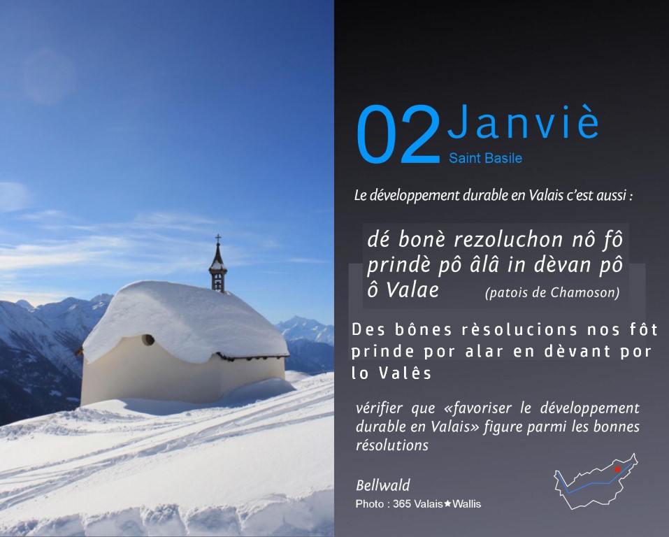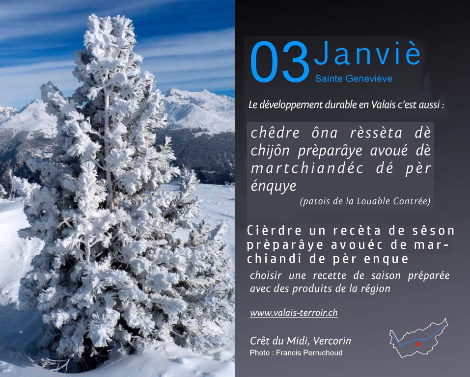 Accueil > Valês (VS) > Calendriér pèrpèrtuèl du Valês > Calendriér pèrpètuel - janviér