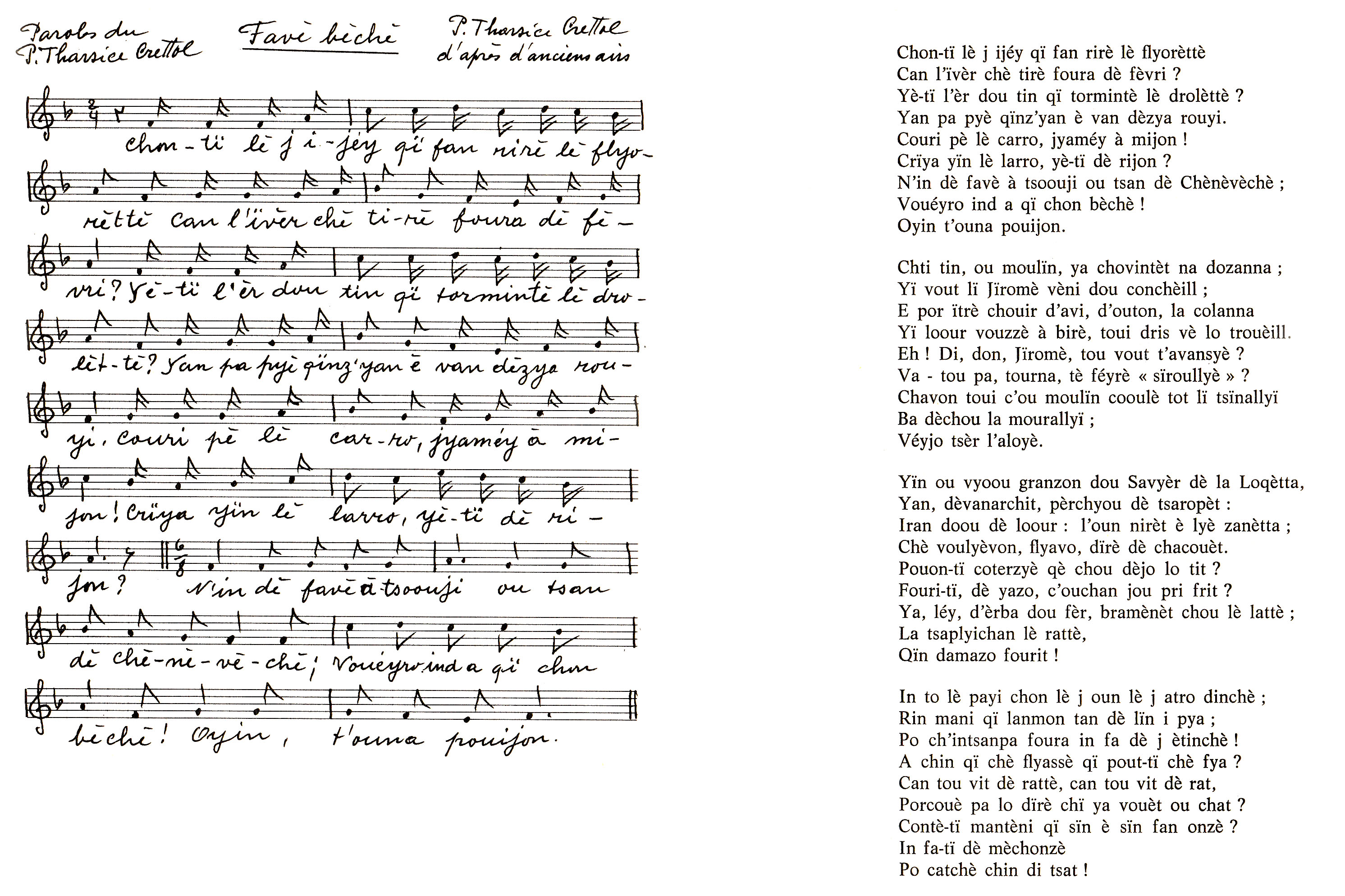 N’in dè favè à tsoouji ou tsan dè Chènèvèchè ;